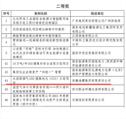 ●《水泥窯煙氣二氧化碳捕集純化與利用示范項目》榮獲安徽省十大低碳應(yīng)用場景