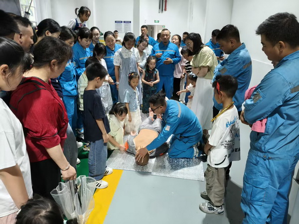 沉浸式體驗(yàn)爸爸的工作日常,走進(jìn)爸爸的“第二個家”。家屬們在工廠講解員的帶領(lǐng)下,先后參觀了企業(yè)工廠廠史館、中控操作室以及安全實(shí)訓(xùn)基地。在廠史館,10歲的果果眼里寫滿新奇,“這是什么,那什么”問個不停,當(dāng)她發(fā)現(xiàn)工廠成長照片墻上爸爸的身影時,興奮著指給旁邊的媽媽看;在心肺復(fù)蘇假人模擬操作環(huán)節(jié),8歲的小小男子漢大樹在爸爸的手把手教學(xué)下,一邊數(shù)著“1、2、3……”一邊認(rèn)真地給假人模型做按壓式心肺復(fù)蘇。這種沉浸式體驗(yàn)不僅讓孩子們觸摸到父親工作的溫度,還有對“爸爸為什么晚歸”的全新理解,更在稚嫩的心靈播下職業(yè)啟蒙的種子。